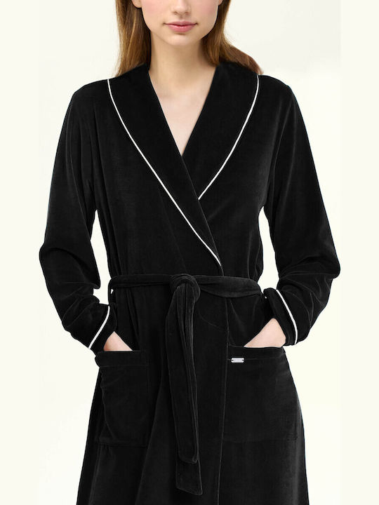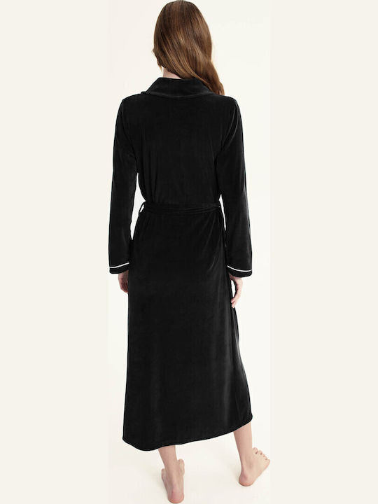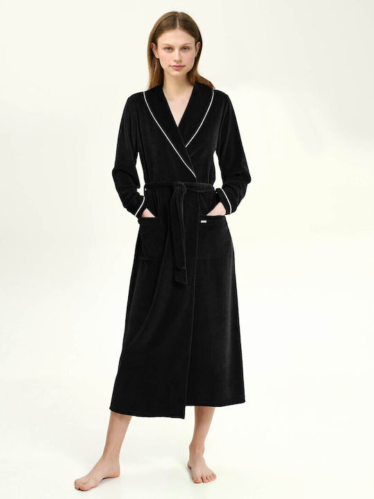 Vamp Χειμωνιάτικη Γυναικεία Μακριά Ρόμπα Με Ζώνη Βελούδο Κωδ. 23164